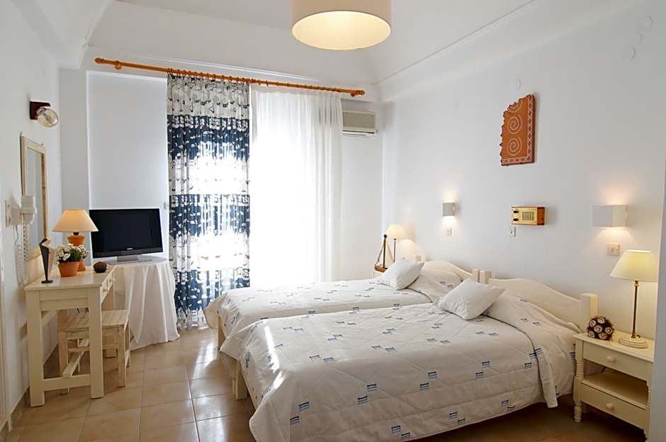 Air-conditioned room with private balcony, satellite TV, direct dial phone, hairdryer, radio, safe box and fridge.