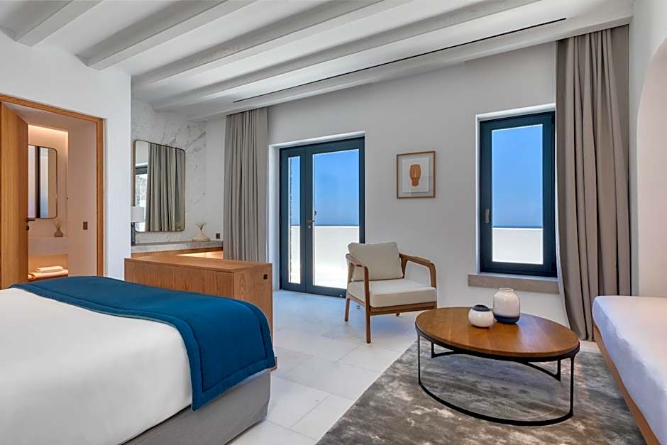 Welcome to the lavish Sandblu Resort, a 5-star oasis located in the stunning Kamari, Santorini, Greece! Priced from just €150 per night, this tranquil retreat is only a breezy 0,2 миль from the bustling city center, making it the ideal spot for mixing relaxation with adventure. With breakfast included, you can kickstart your day with a delightful meal before lounging by the private beach, where beach umbrellas and sun loungers await your enjoyment.