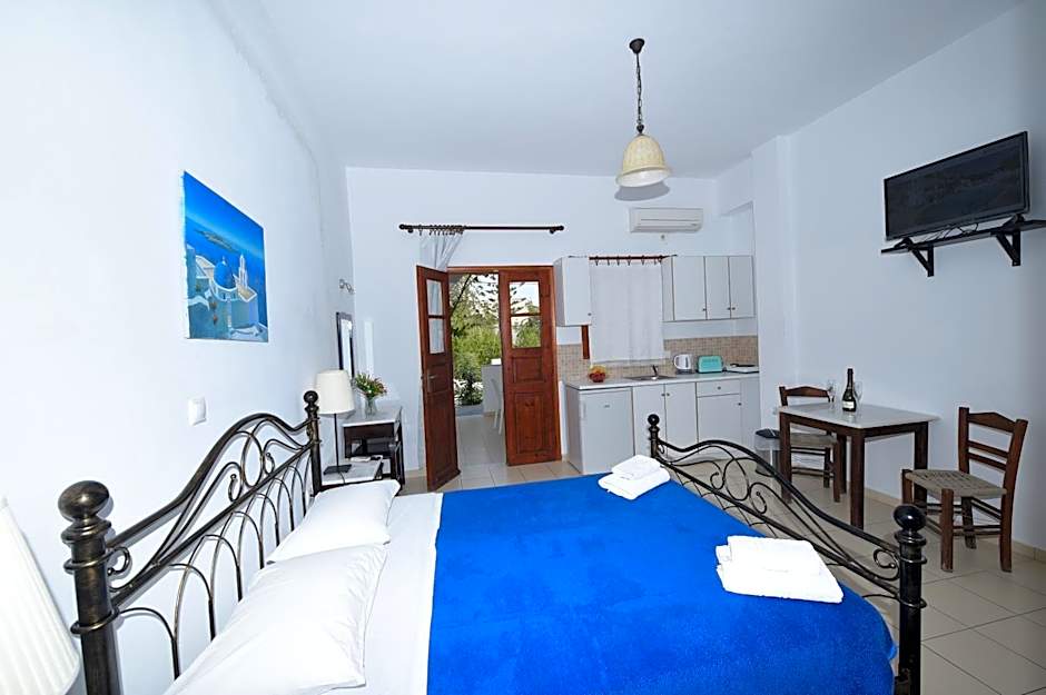 Lovely traditional Greek Aprtment basic but very clean and comfortable with service to the room daily. Our room was no 3 with a little terrace leading directly onto the pool area which again was cleaned and maintained daily. Pool area has a little bar where you can get anything you need to drink..if unattended this can be paid for whenever it’s very relaxed! Plenty of sunbeds at the time we visited. Kamari beach front with all bars and restaurants is a 10 min walk with other more traditional family run restaurants along the way. (Try and support them!) If you’re looking for luxury you’ll find plenty of other high priced alternatives but personally Sunflower is wonderful at a great price. John and the staff were extremely welcoming and helpful and looked after us with anything we needed. We would 100% revisit.