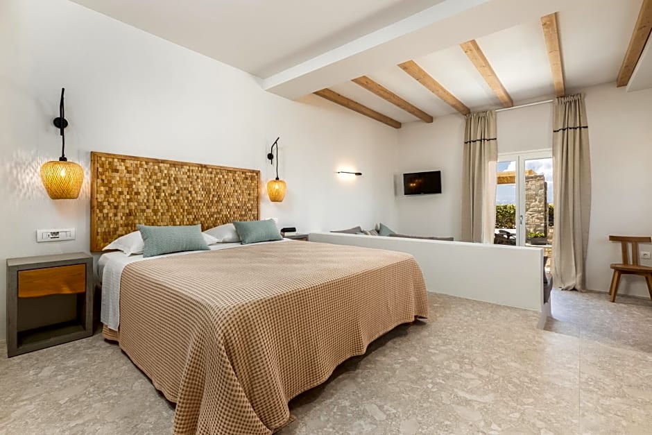 Lovely little hotel close to the centre of Naousa but far enough to be peaceful and quiet. It’s located right by the sea, on a small peninsula covered with wild flowers, where you can watch the sun rise and set. The room was squeaky clean, and our terrace opened up to beautiful plants and flowers. The staff were great, particularly the cleaning lady / gardener and her husband who talked to us every morning and offered us fresh herbs from the garden.