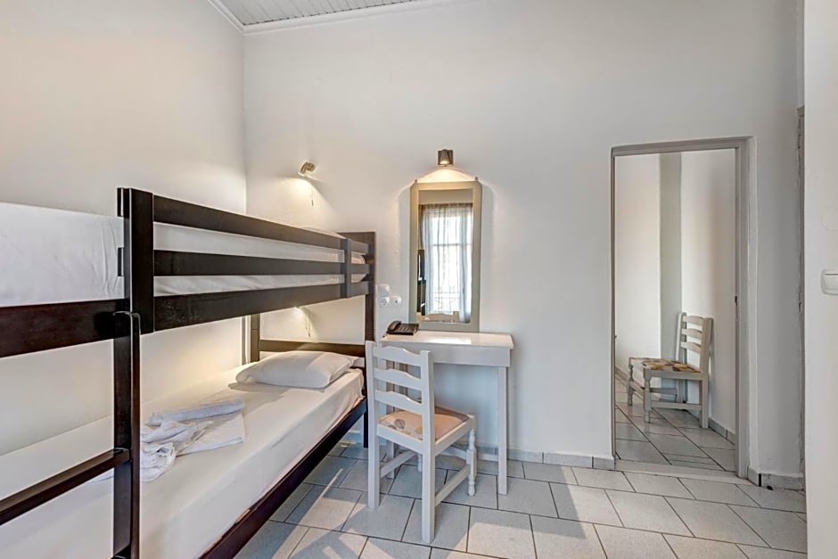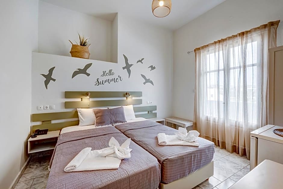 I loved everything in the hotel. the staff is amazing, very attentive. the best experience in Greece so far. it's right on the beach. The beach was amazing, clean, sandy, water was the cleanest. the hotel has a restaurant down, where the food is delicious and affordable. the lady from reception was very very nice, she made sure we were comfortable in every situation. The best part was that, after checkout, we needed to leave by ferry but the ferry was at night. we decided to stay on the beach, and the lady gave us a whole new spare room, to wash up and get ready for our departure (we didn't expect that coming), without any price added. we were very happy and delighted with that gesture. thank you <3 The place is full of locals, not a lot of tourists, and not too crowdy and noisy. The place is just perfect for a small peaceful vacation. Loved it. the accommodation is according to price, but we had quite a big room for 4 people. if you are looking for peace just go there, it's affordable and comfortable.