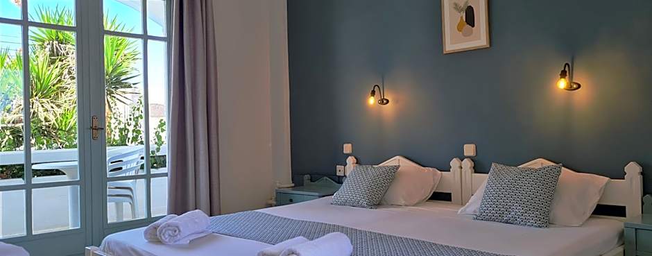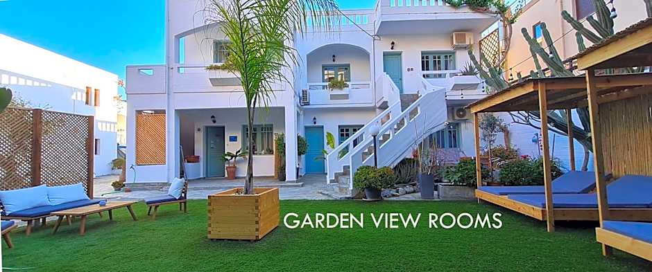 Just from the Stalós city center, this property offers a playful mix of apartment-style comfort and hotel convenience. A private entrance opens onto a terrace and a balcony with garden views, plus a sun deck for sun-drenched afternoons. The address is 3rd Side Street Malindretou, Stalós, Greece.
