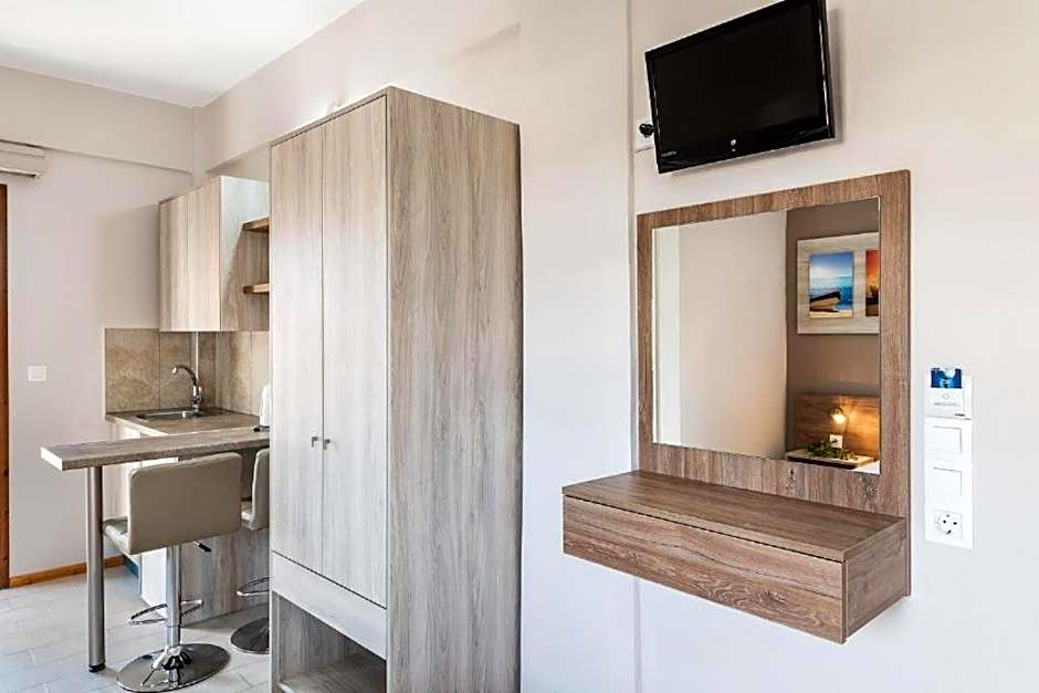 Outdoor swimming pool (free) and a Kids' pool (free) provide water-friendly fun, while Private Parking (free) and Wifi (free) add everyday convenience. Air conditioning (free) keeps things comfortable, and a Beach is right at hand, with a Sun deck, Terrace, and Garden view to enjoy the Greek outdoors. The kitchenette comes with Kitchenware, and a Patio and Balcony let guests dine or relax with a view, all while Beach umbrellas (free) and Beach chairs/Loungers set the seaside mood. Shuttle service (extra charges) and Airport shuttle (extra charges) offer travel options, alongside Parking On Site (free) and Tour desk for planning local explorations.