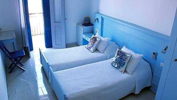 This is an amazing hotel in Chorio, its in perfect location as just around the corner from the bus stop and the stairs down to the harbour. Just outside the gates there is a mini market and a tiny bakery, too tempting to walk past .....The room was perfect with the most amazing view of the sea and the harbour, we never got tired of looking at it. Everything is spotlessly clean and there was a never ending supply of fresh towels, toilet rolls etc. Great aircon and very comfy beds. There wasn't a breakfast option upon booking but the lovely lady at the hotel is around from approx 7.30 am setting up a wonderful array of complimentary breakfast items ( eggs, bread, rolls, cheese, ham, cereal, yoghurt, honey, juice, tea, coffee.. etc) in the dining area where you can eat on the terrace looking out at the amazing view. It's a lovely touch and a great way to start the day. You won't be disappointed if you choose this fab hotel .