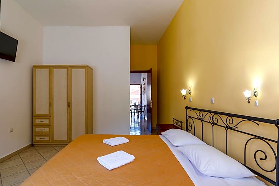 Traditionally decorated, this apartment opens to a balcony or terrace with views to the garden and Symi Mountain. It includes 2 separate air-conditioned bedrooms and a living room with private balcony or terrace, and offers: