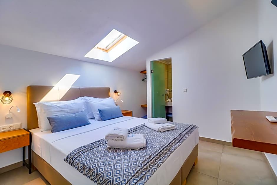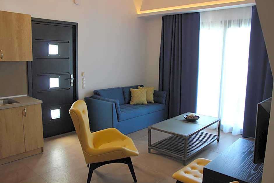 We had the deluxe suite for our family of 3 holiday, sutuated upstairs. Tge whole apartment is decorated nicely and was kept clean daily. Bedding and towels was changed on our mid stay. The hosts were really lovely and welcoming. The suite downstairs has a large room with a kitchenette with all you need to cook a small meal, a sofa bed, a tv, a round dining table with chairs, a cupboard with shelves in one side and hanging space on the other and a large bathroom with a shower and toilet. There's a balcony with table and chairs overlooking tge pool area. Upstairs you will find the master bedroom with an en-suite. The upstairs is small with not a lot of space to put your clothes, it could do with a chest of drawers. I had to keep most of my clothes in my suitcase and use as a drawer since there wasn't enough space. Tge en-suite was small but nicely decorated. I kept hitting my head almost every time i got up the toilet and had to twist and turn sideways to avoid knocking my head. Bed was a good size and large enough for both of us but mattress was a bit too hard for my back. The lighting in the master bedroom could be better. The room aslso had a tv. The unfortunate was if you had both TV sets on, you needed to have the volume quite low if you wanted to try to sleep on tge other level due to being open mezzanine. The good side both tv controlers can operare either tv depending which way you pointed. The hotel had bicycles you can use free of charge, to explore the area, which we thought was a nice touch. The swimming pool was not too big enough for tge 3 of us. One end was shallow for toddlers to spalsh around. Niw and again you would find ants or bees in the water but there was a net you could use at anytime to get rid of them. The hotel is close to the beach 3 min walk. Around the corner there's a mini market that has all you need and sale pasties and coffee too for breakfast.