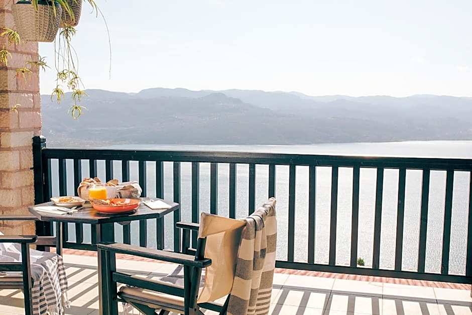 Decorated in warm colors, this air-conditioned room opens to a balcony with views over Trichonida Lake or Panaitoliko Mountain. It features: