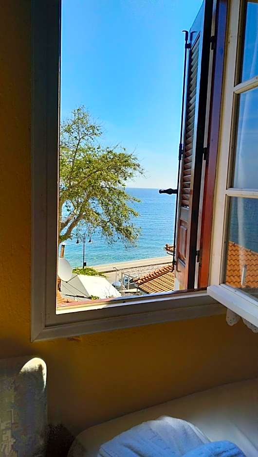wonderful view from our room directly on to the sea with a nice balcony, that had a table and chairs to sit on. The breakfast was varied (bread, amazing cake, yoghurt, honey, meat & cheese, etc) and plentiful- we really enjoyed it. Location is perfect - you cross the street and are on the beach. Restaurants are in walking distance. The whole place feels really cosy and welcoming, something which is further helped by the lovely hosts. We arrived by bike and everything was made easy for us to keep the bikes in a safe place and continue our ride after the stay (with a package of cake provided for the journey.)