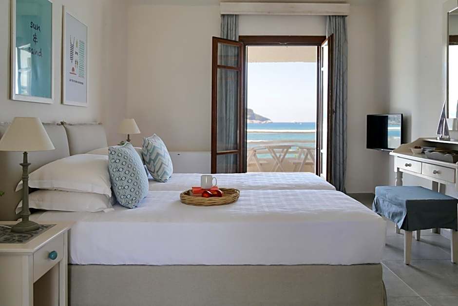 Payment is flexible on site, with cash accepted as well as Visa, Mastercard, and Maestro. A diverse slate of accommodations awaits, including Studio, Executive, Junior Suite, Suite, and House options, with many rooms offering garden, pool, or sea views to match the island vibe.