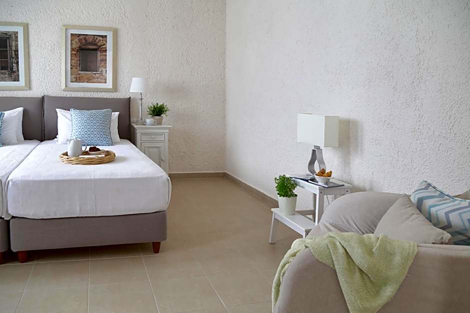 Overlooking the sea, this suite is furnished in warm colors and features 2 bedrooms, living room and bathroom. Please note that this room type can accommodate 3 adults and 2 children up to 11 years old. Please note that the 2nd child will be accommodated at a sofa bed in the living room.