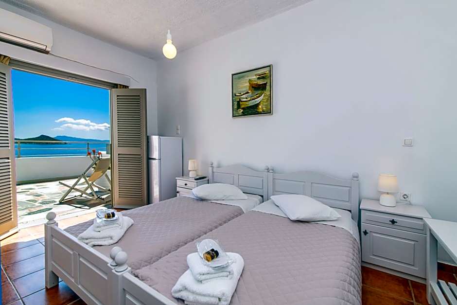 We loved staying here. We felt very welcome and safe and our triple room was upgraded to a two room space with a balcony and an amazing ocean view. We loved the quiet location right opposite the beach. It was a 5-10 minute flat walk into the town. A beautiful buffet style breakfast of hot and cold foods was included which we had out on the terrace. Amazing pastries and the best Greek yoghurt I've ever had!