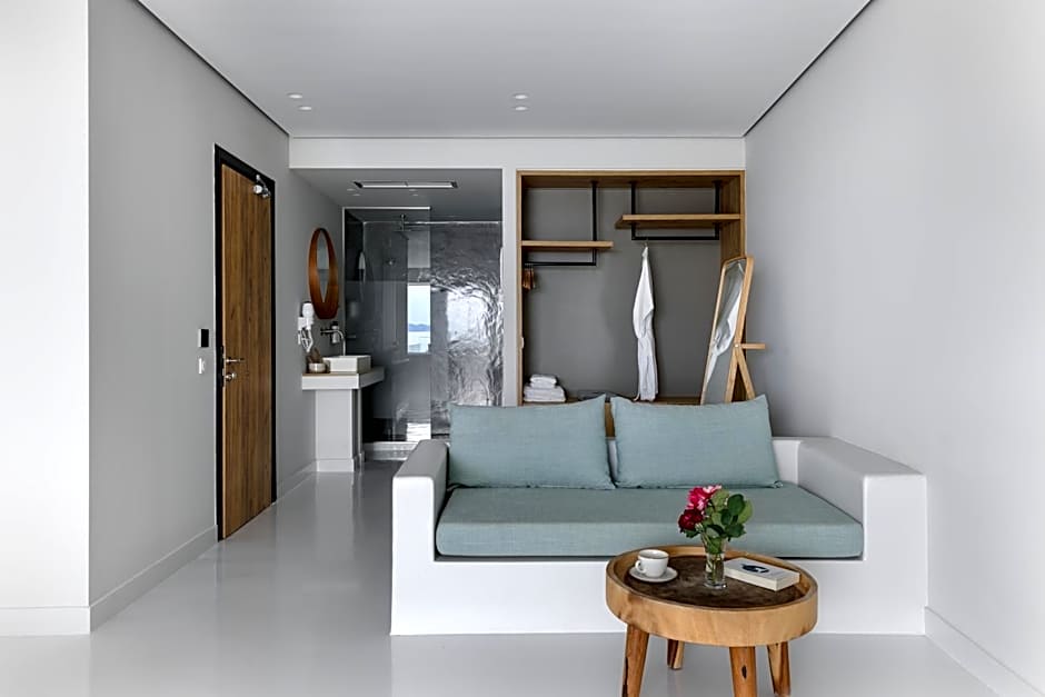 The hotel has an absolutely fantastic location with sea view. i could sleep with the sound of the waves, it was magical and absolutely peaceful. the room was very spacious and i loved the design and cozy furniture and decoration in minimalist beautiful scandi design. With all the nececessary amenities. i did not need the AC, i could benefit of the cool sea breeze in the night, it was a delight. i could go for a swim in the sea right in front of my room every single morning. the jacuzzi a pool in the room was amazing. very close to the center. fantastic amazing healthy breakfast 8 FRESH FRUIT, FRESH ORANGE JUICE..) and nespresso machine in the room. excellence in everything for a fantastic stay, we will come back for sure. the best bed i had on my 6 islands hopping!