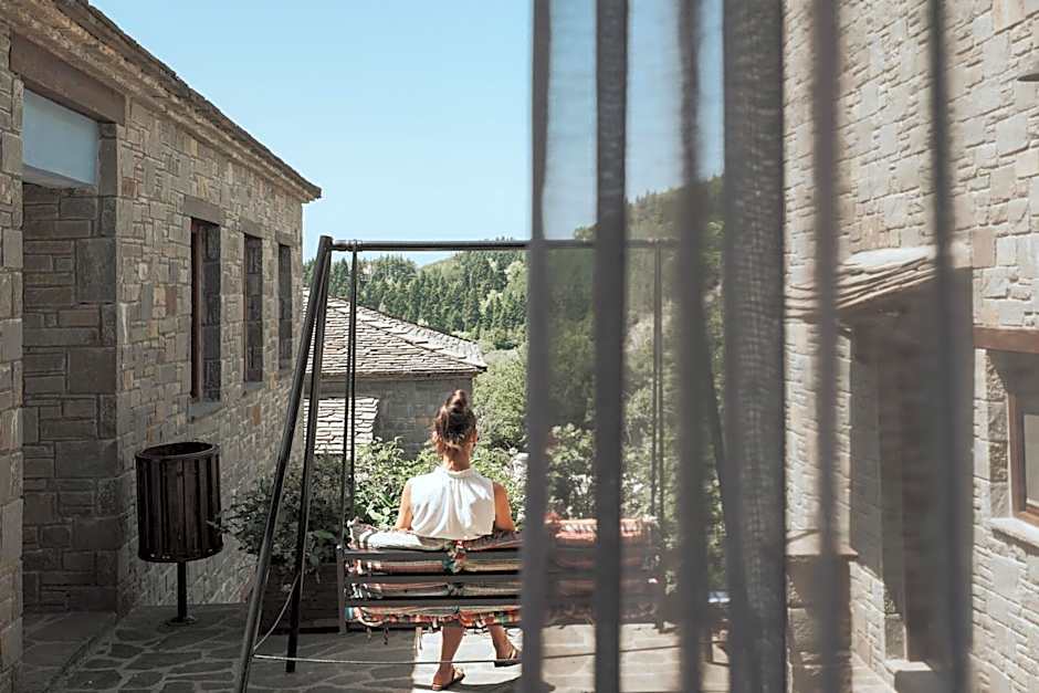 The hotel was conveniently located in the center of the small village, with many local tavernas and other establishments nearby. The rooms were new and very stylish and quite comfortable. We opted for a couple of junior suites that had an amazing view of the surrounding mountains. The decoration was exquisite, there was a fireplace for the cold days of winter and the room had a mini fridge along with a coffee machine which was great for a late-night espresso! The breakfast buffet was amazing with local pies, local products, and freshly baked pastries. The dining area was also very nice. The place offers a big playground for kids, a restaurant, and all the amenities you will need to feel like home. A very well-made establishment overall.