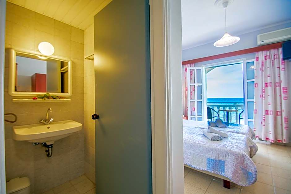 Location to the sea, and Argasi town, beautiful view, convenience of having pool bar, reasonably priced, clean pool. We took the bus to Zakynthos town, bus stop 5 mins walk, bus was 30 mins late but it will turn up. 😅 Taxi back was 10 euro. There are some pretty disparaging, and unjust reviews in my opinion. I went with the knowledge that this is a family run hotel, no frills etc, so I was not expecting 5*. Our room was 3rd floor, basic but clean, room cleaned every day with fresh towels. The bathroom is small and showering far from perfect but functional. We had the lovely clean pool to ourselves pretty much, always plenty loungers, which are in the 2 garden areas not round the Pool itself. I spent lot of time in sea, totally quiet and crystal clear water. The rooms/hotel could use some updating, but if such renovations took place, no doubt would push the price up! I would avoid the ground floor rooms from what people say. The rooftop restaurant is very pretty, tapas style food, pricier, but worth a visit for something more fancy, we were happy with the pool bar food though! If you want a chilled laidback vibe, no frills and reasonably priced, I would recommend. If you want a 5* experience then book one of the much more expensive hotels nearby!