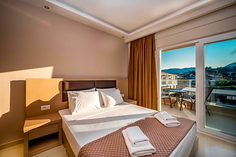 We liked the breakfast with good variety and quality of products (various fruits, breads, croissants and Greek pastries, yoghurt, eggs etc.). The location is in a side street next to the Laganas ‘strip’ with walking distance to the beach. The hotel is located well to go to Zakynthos city or make trips on the island. There is a night guard to make sure that only hotel guests can enter the hotel. The room was cleaned every day and clean towels are provided each day. Also important to mention is the quality of the beds. Pool is very nice with the reception and bar area. The hotel hosts, Nicky and Nicole and the rest of the staff made us feel very welcome and comfortable from the minute we arrived to the moment of departure.