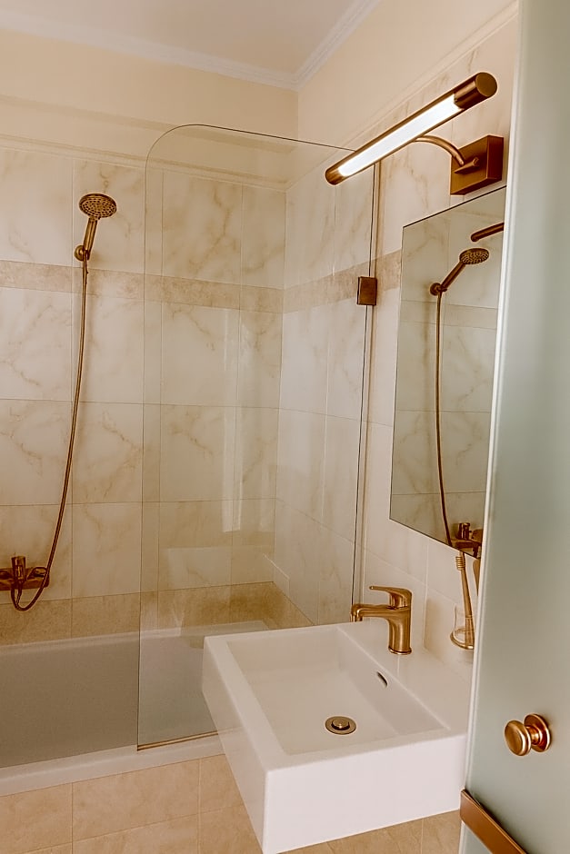 Newly built room, in earthy tones, elegantly decorated with modern furniture. Features a flat-screen TV and marble bathroom. It offers garden view.