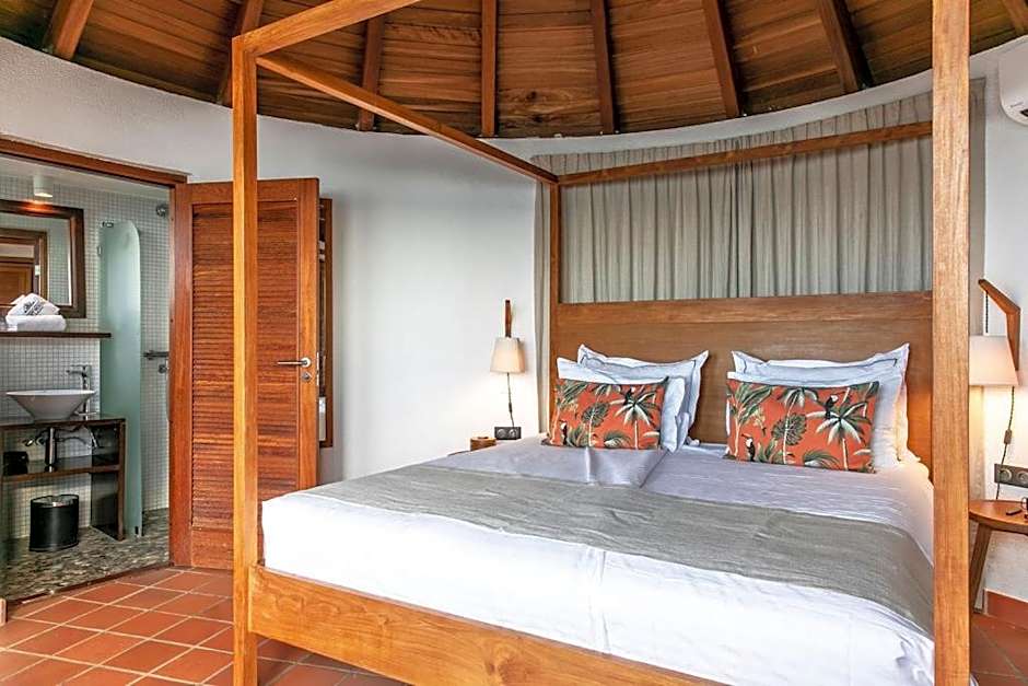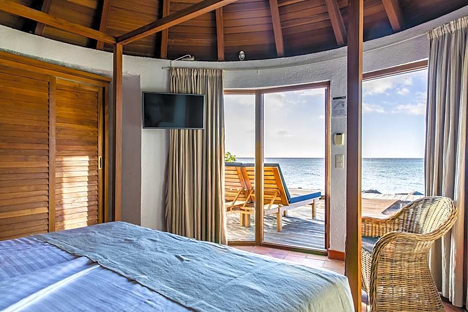 This bungalow has a partial sea view overlooking the Caribbean Sea and a tropical garden. All bungalows are located in the bungalow village. It is equipped with bathrooms, furniture and terraces (individual or to share).