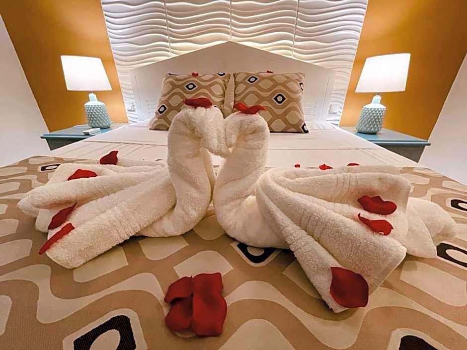 An outdoor infinity pool with a shallow end offers a sun-warmed focal point with adults-only access at T Tropicana Suites. The on-site Jungle Bar embodies multiple moods—family-friendly, modern, and romantic—providing a versatile spot to unwind after a day under the Guadeloupe sun.