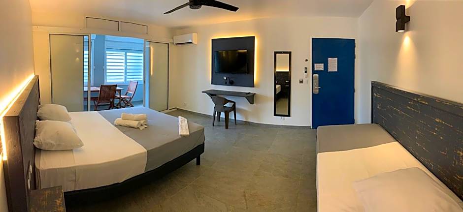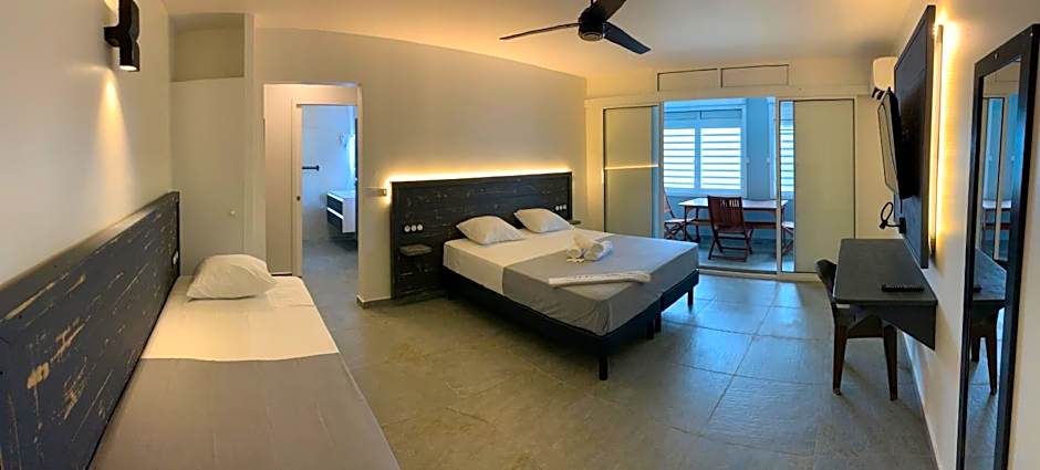 Karaibes Residence offers Studios with Sea View, which are 366 sqft in size and do not allow smoking. These rooms can accommodate 3 adults and 2 children, with bedding options including 1 Twin bed and 1 Queen size bed.