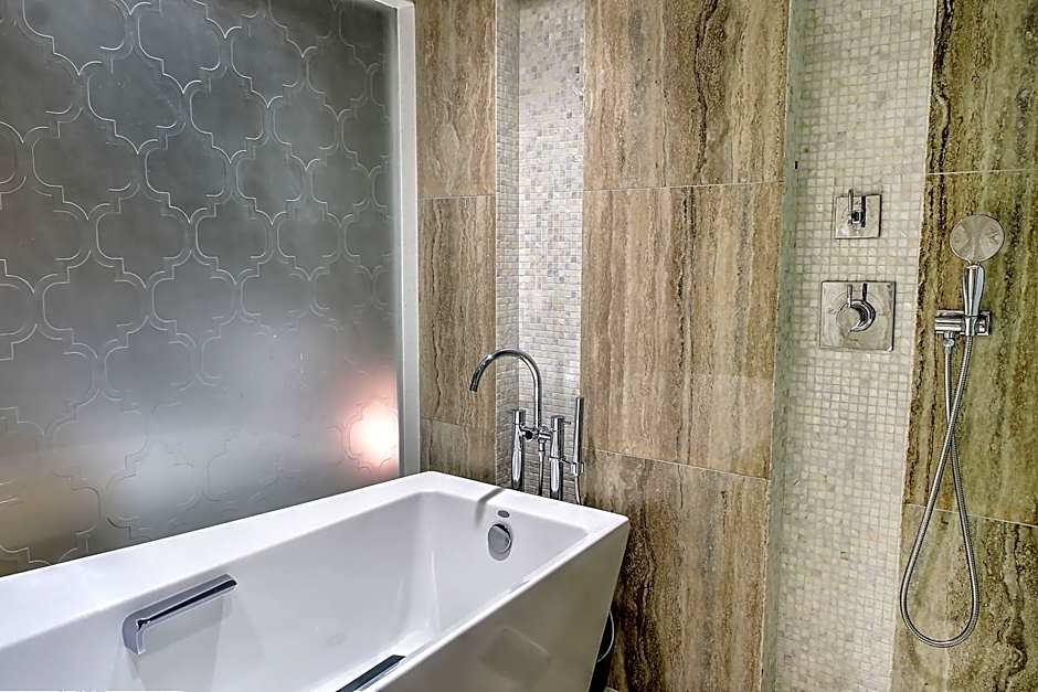 This suite features a air conditioning and a mirror TV. There is a bathtub and complimentary L'Occitane Verbana series toiletries. Bed linen is provided.