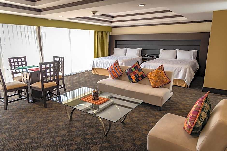 Holiday Inn Guatemala offers a variety of rooms including suites and standard rooms. Occupancy ranges from 2 adults and 1 child to 3 adults and 2 children. Smoking is not allowed in any of the rooms. Bed sizes vary from single King beds to multiple Queen or Double beds.