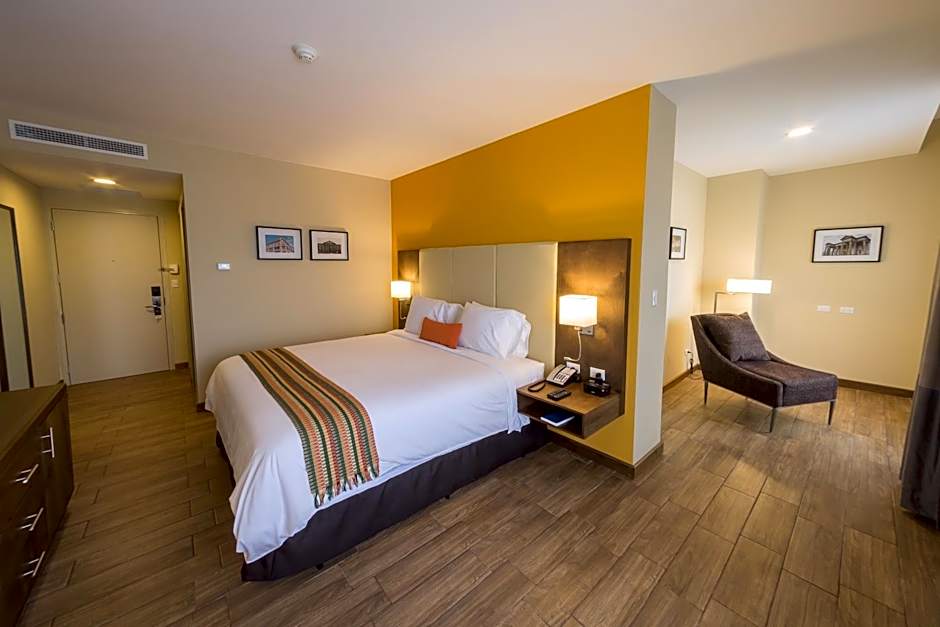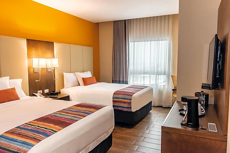 The LATAM HOTEL Plaza Pradera Quetzaltenango offers a Standard Queen Room with Two Queen Beds, a Junior Suite, and a Standard King Room. The Standard Queen Room accommodates up to 3 adults, has 2 Queen size beds, and is non-smoking. The Junior Suite accommodates 2 adults, has 1 King size bed, and is also non-smoking. The Standard King Room accommodates 2 adults, has 1 Queen size bed, and is non-smoking as well.