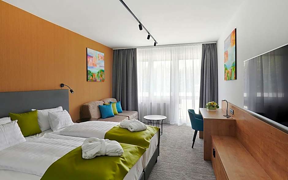 The hotel's prime beachfront location provides stunning views of Lake Balaton, offering a peaceful escape from the hustle and bustle of everyday life. With 539 reviews, Hotel OTP Balatonszemes boasts excellent feedback from satisfied guests. The property's free private parking, air conditioning, and kid-friendly amenities make it a great choice for families and travelers seeking a comfortable and enjoyable stay. The convenient on-site bar and restaurant serve up delicious meals and refreshing drinks, while the sun deck, terrace, and garden offer lovely spots to relax and soak up the sun.