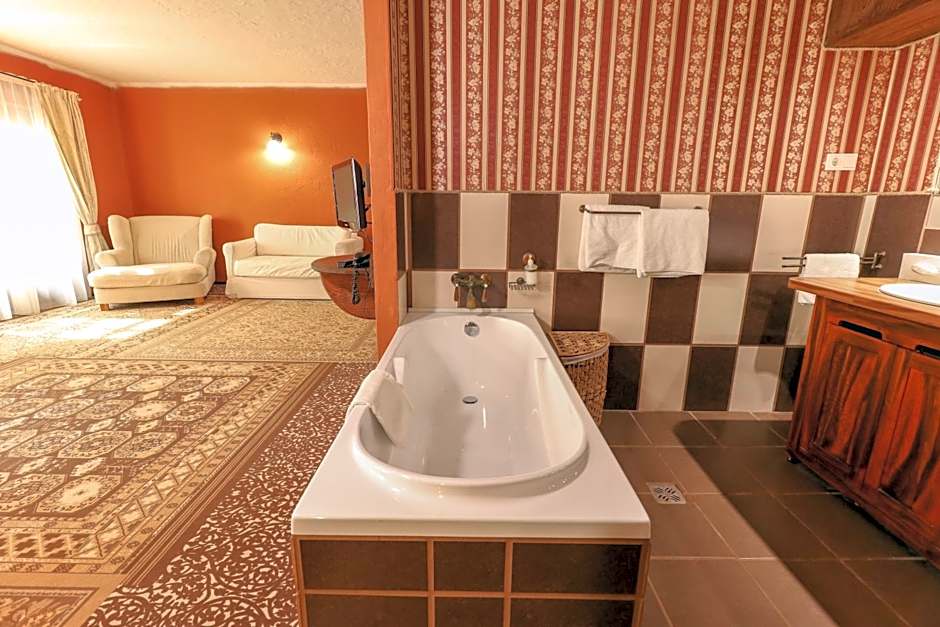 Lovagterem, the on-site restaurant, offers a family-friendly, traditional ambiance that welcomes diners of all ages. A nearby bar adds a relaxing spot for winding down after a day of exploring, rounding out a setting that feels cozy and inviting.