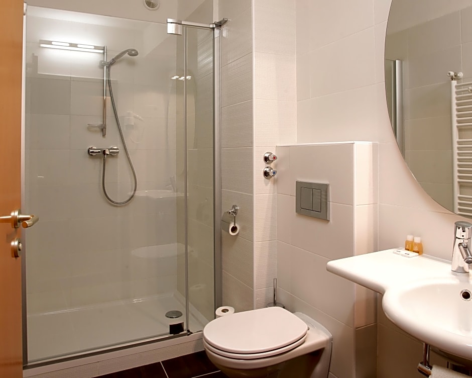 The hotel is situated in a quiet street, but in a live area. Around you can find a lot of coffee shops and restaurants. Room was spacious and comfortable, in a very good condition. Also with a large shower/toilet. Our room was at the back in a closed yard, but cleverly they use a large printed illustration that make you feel is a large building opposite you. Breakfast has a good variety, and some things change by day. The ability to use the coffee machine 24/7 (or have various teas) with biscuits, is a good touch if you want to relax downstairs. The hotel is not large, but is cosy. One of also good reasons to stay is that near and around there are accessible means of transportation with short distance walking (bus, tram, metro) that from there you can visit Budapest for sightseeing. Definitely the hotel will stay on our list.