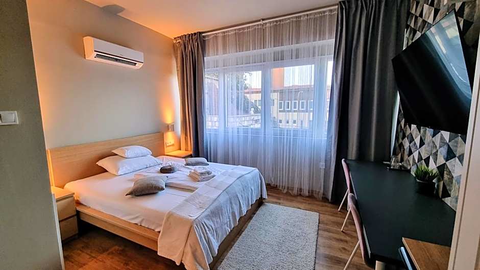 The double room provides air conditioning, a wardrobe, as well as a private bathroom featuring a shower and a hairdryer. The double room features a safe deposit box, parquet floors, heating, a flat-screen TV, as well as city views. The unit offers 1 bed.
