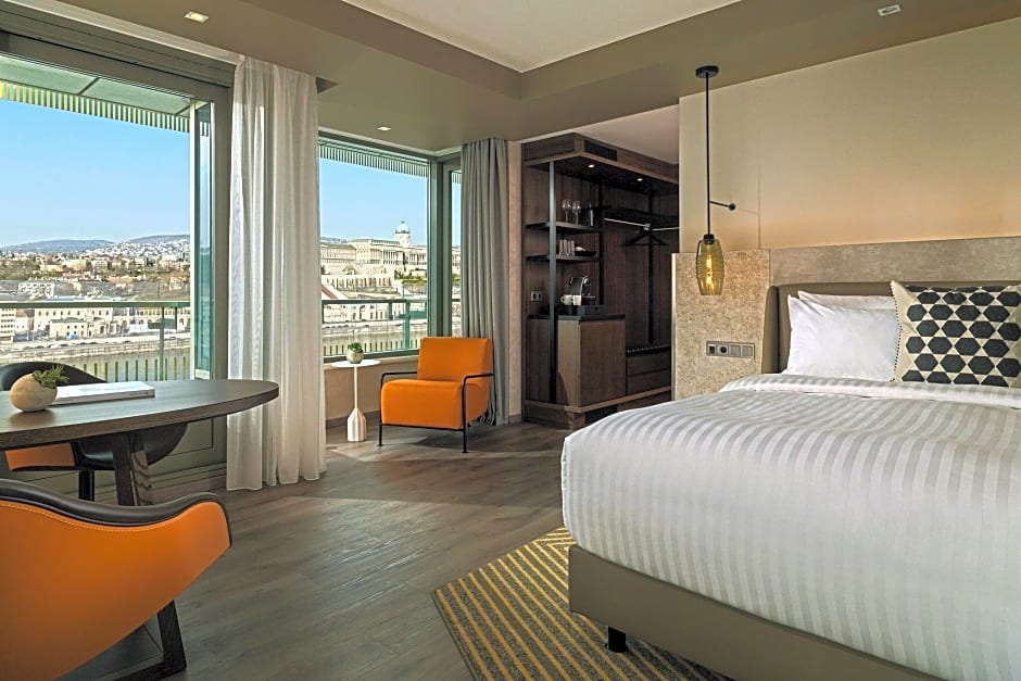 These rooms are located on the 8th, 9th and 10th floor of the hotel, and offer picturesque view of the Danube, the Royal Castle, the Chain bridge or the Elizabeth Bridge and the Citadel. Free usage of 1 hour high-speed Internet in the room is provided. The rate includes M Club Lounge access, which offers the following free amenities: - selection of cookies and fresh fruits in the morning - selection of nonalcoholic drinks and hot and cold snacks throughout the day - upgraded hot and cold Hors’doeuvres every evening - selection of alcoholic beverages and desserts in the evening - free usage of wired and wireless high-speed Internet - free usage of computers laptop docking station and printer - newspapers and magazines Please note that M Club Lounge is located on the ground floor.