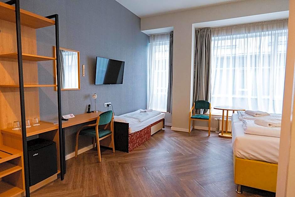 Facing the street or the inner courtyard, these spacious twin or double rooms with air-conditioning feature satellite TV and a bathroom with a shower.