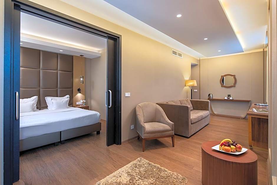 The air-conditioned suite features 1 bedroom and 1 bathroom with a bath or a shower and a hairdryer. The suite has parquet floors, a seating area with a flat-screen TV with satellite channels, soundproof walls, a mini-bar, as well as a tea and coffee maker. The unit offers 1 bed.