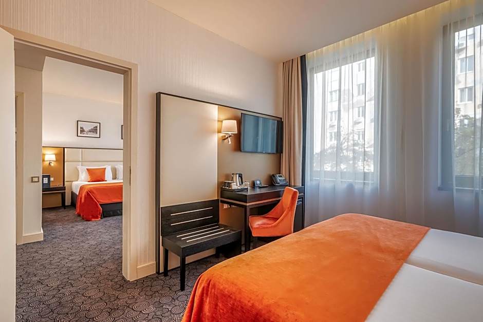 This twin/double room has a flat-screen TV, desk, telephone, mini-bar as well as an private bathroom with a hairdryer and free toiletries.