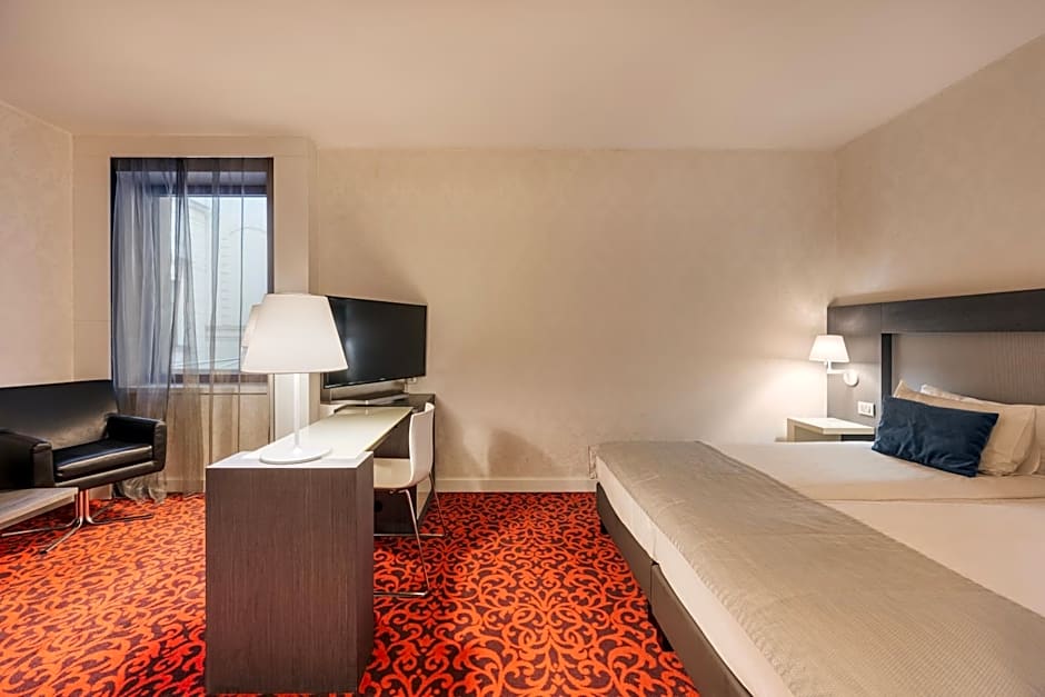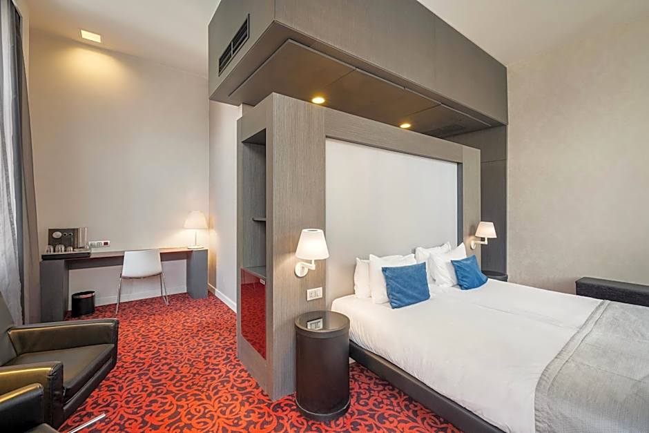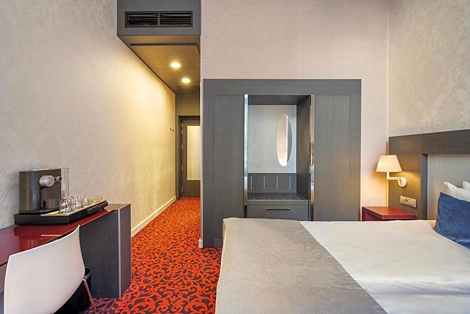 This double room offers views to the square in front of the hotel. It features a flat-screen TV, a mini-bar, an oversize safe, high-speed internet access and a coffee machine.