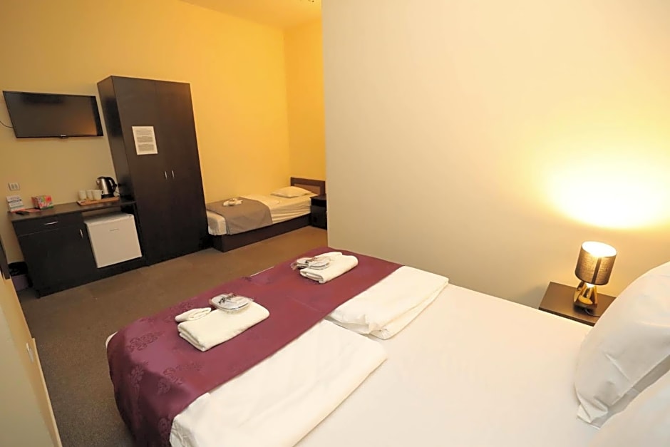 Room size was good for three people. It was very useful to have tea/coffee facility making in our room. We also had a fridge which saved us money to eating out all the time. Reception staff members and housing keeping service was excellent. We were made to feel welcomed and helped when needed. Due to staff warm attitude and good value for money service we returned to the hotel again. Access to public transport is excellent. All facilitates were at a walking distance. Close to sightseeing as well if need be.