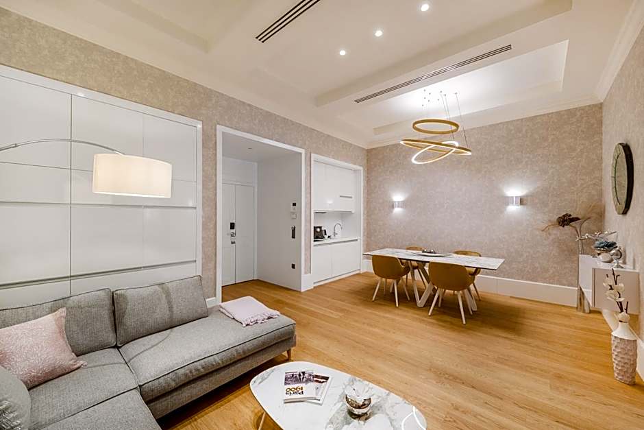 This suite offers panoramic views over the Danube, a living room with kitchenette and a dining table. A coffee machine, flat screen TV are provided. The bathroom is equipped with a rain shower, a stand alone bathtub and luxury toiletries.