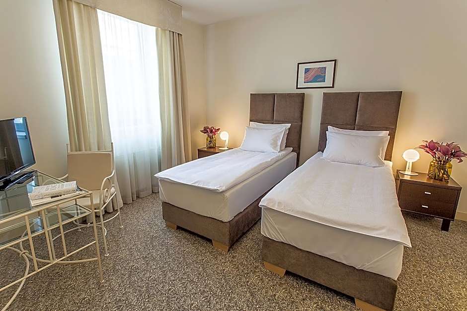 Room configurations span a range of options such as Deluxe, Deluxe Suite, Grand Deluxe Suite, Junior Suite, Classic Suite, Ambassador Suite, Suite Business, and more, with many layouts offering garden or courtyard views. This blend of space and style is ideal for couples, families, or groups seeking a versatile Budapest stay that pairs city access with a touch of resort-like serenity.