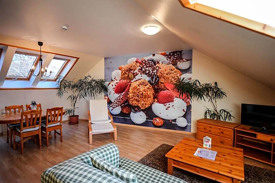 Rooms at Imola Udvarház Dessert Hotel include a Family Apartment, a Two-Bedroom Apartment, Single and Double Rooms. Occupancy ranges from 1 adult in the Single Room to 4 adults and 1 child in the Two-Bedroom Apartment. Smoking is not allowed in any of the rooms. Bed sizes vary from Twin beds and Queen size beds to a Sofa bed in some options.