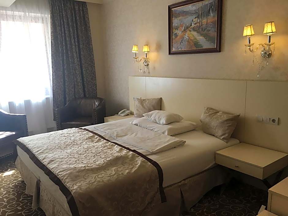 A lovely hotel set in a pedestrian part of Györ. They send you instructions on how to enter with a car. There are bollards which go down when you enter the area. The entrance to the underground garage is quite tight. Room was lovely with good comfy bed. Very helpful staff recommended a great restaurant which served vegetarian food. Really nice breakfast plenty of choice including fried eggs,sausage and bacon plus pancakes cheese slices,cold meats, bread rolls, salad, good coffee .