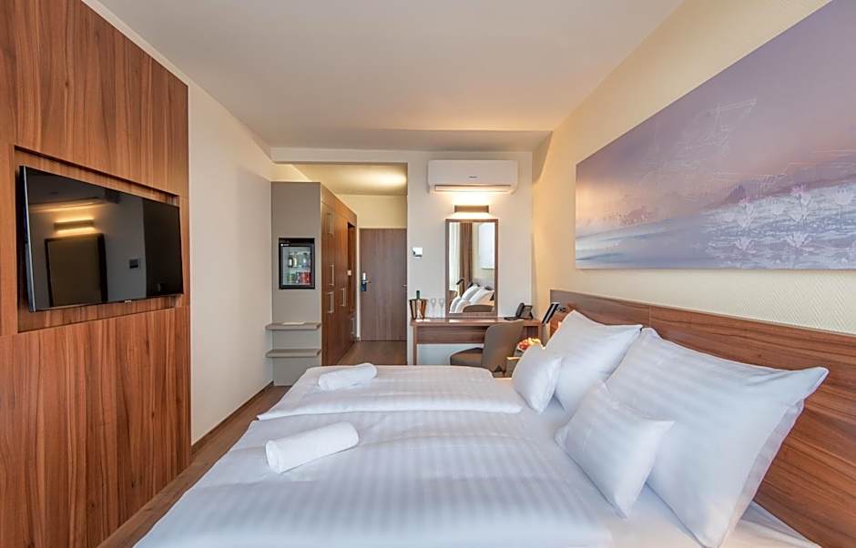 At Hunguest Hotel Panoráma, guests can choose from a standard double or twin room, a superior double or twin room, or a superior double or twin room with a lake view. All rooms have a size of 205 sqft and do not allow smoking. The rooms can accommodate 2 adults and 1 child, and have either 2 twin beds or 2 twin beds and 1 king-size bed.