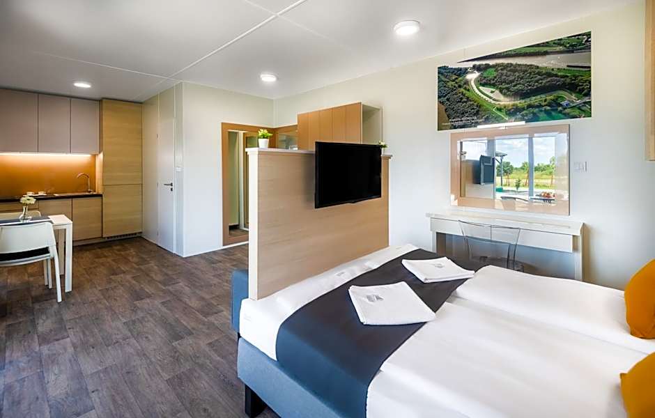 Get ready to experience a comfortable and spacious stay in the Studio or Two-Bedroom Apartments at Tisza-tó Apartmanpark. The Studio Apartment can accommodate 2 adults and offers twin beds for a good night's sleep, while the Two-Bedroom Apartment can accommodate 4 adults with a double bed, twin beds, and a sofa bed. Whether you're traveling with a loved one or a group of friends, these well-appointed apartments are the perfect retreat after a day of adventure.