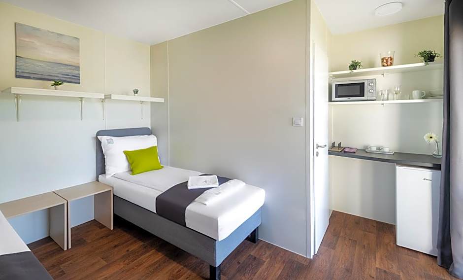 The hotel offers Studio Apartments and Two-Bedroom Apartments. The Studio Apartments have a room size of 172 sqft and accommodate 2 adults with 2 twin beds. The Two-Bedroom Apartments have a larger room size of 344 sqft and accommodate 4 adults with a sofa bed, 2 twin beds, and 1 double bed. Smoking is not allowed in either type of room.