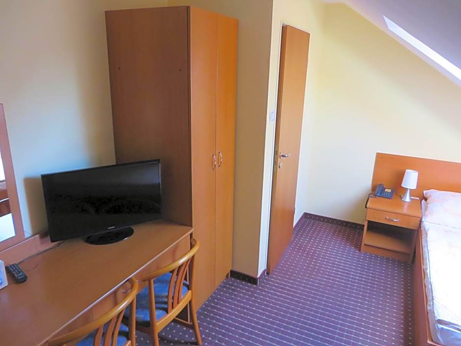 The hotel was very welcoming, in a quiet suburb, about 20 minutes walk from the local station of Tata and the hotel had a late-check-in policy, which really helped. I was given a quiet room in the attic which had air conditioning (this was a great relief from the heat outside). Excellent value for money, complimentary water, fridge in room (was an excellent addition to the room) and it was spotlessly clean. I did not find the language to be a barrier during my stay and the Hungarian breakfast was awesome. Would I stay here again? Most definitely.
