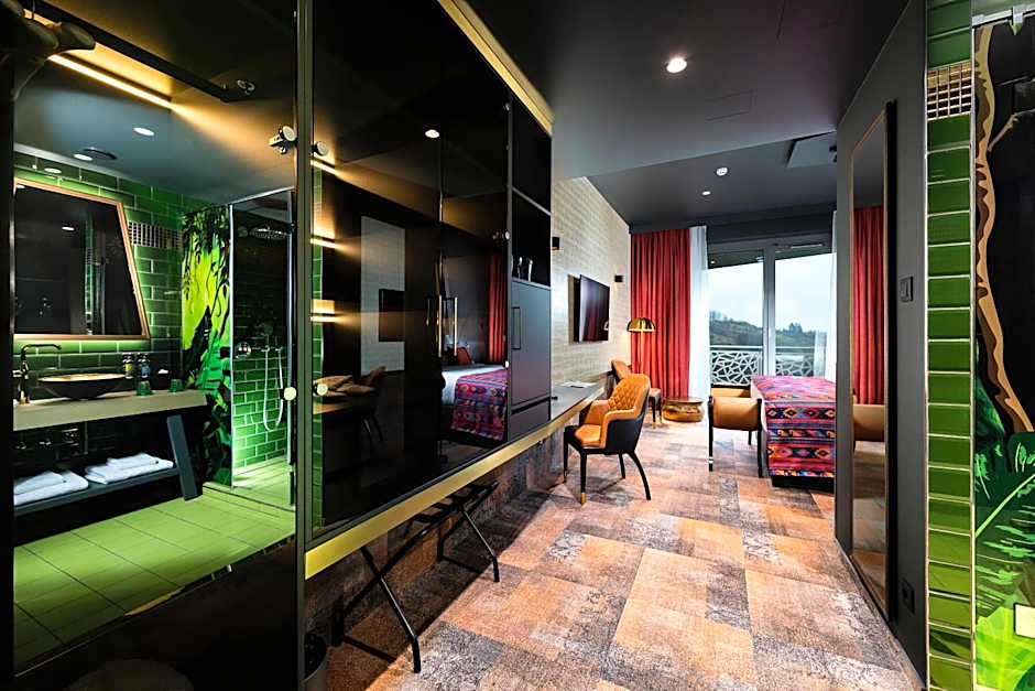 At this luxurious hotel, you can choose from a selection of beautifully appointed rooms and suites. The Deluxe rooms with sauna are perfect for those seeking ultimate relaxation, with a private sauna for your exclusive use. If you prefer a stunning view, the Superior twin room with quarry view or Superior double room with vineyard view will not disappoint. For those wanting extra space, the Junior Suite is a spacious and comfortable option. Whichever room type you choose, you can expect elegant furnishings and modern amenities to ensure a comfortable stay.