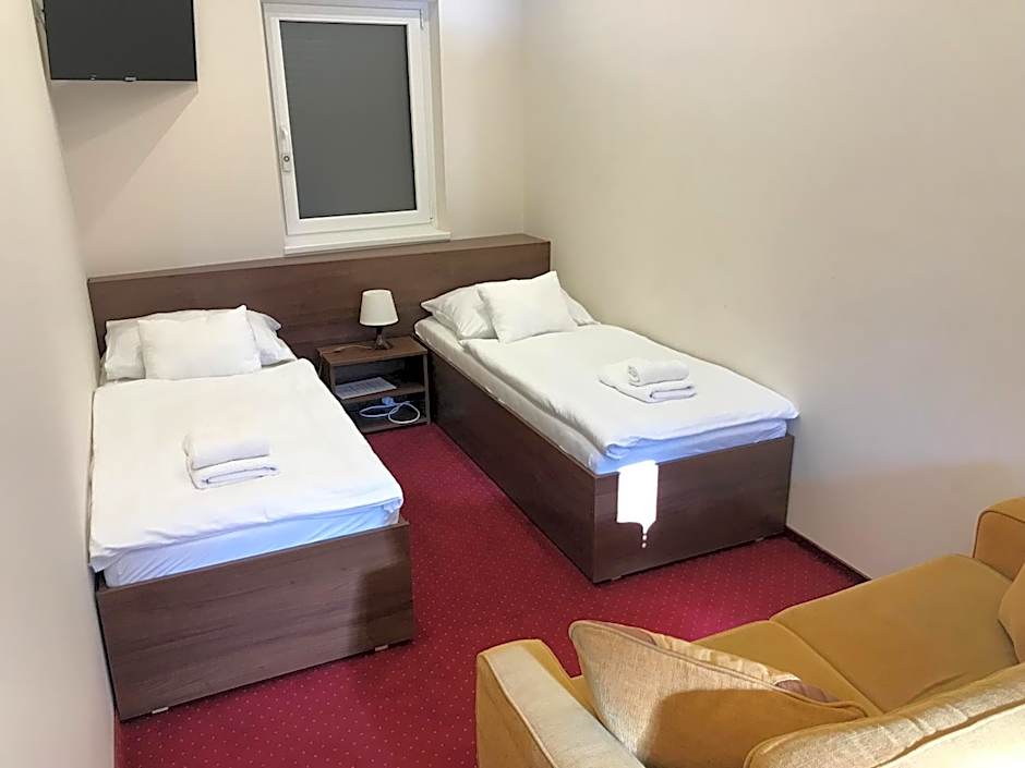 The Termál Apartmanház hotel offers Double or Twin Rooms with Disability Access, accommodating 2 adults with no smoking allowed. The room size is 431 sqft and includes 2 twin beds and 1 queen size bed.