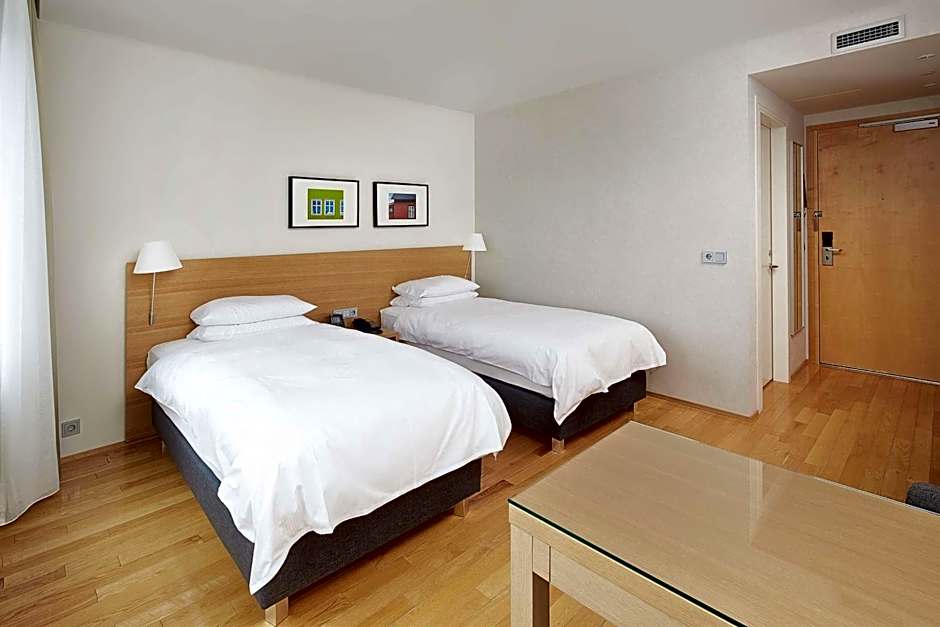 The Hilton Reykjavik Nordica hotel offers a variety of room types including Standard Double Rooms, Twin Rooms, Triple Rooms, Single Rooms, Suites, and Family Rooms. All rooms are non-smoking and have different occupancy capacities ranging from 1 to 4 adults, with options for additional children. Bed sizes include Double beds and Twin beds, and room sizes range from 183 sqft to 646 sqft. Some rooms also offer mountain views.
