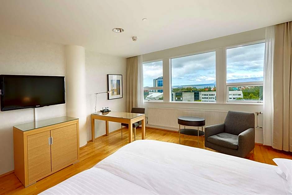 Includes LCD flat-screen TV and views of Mount Esja, Reykjavik city and Faxaflói Bay.