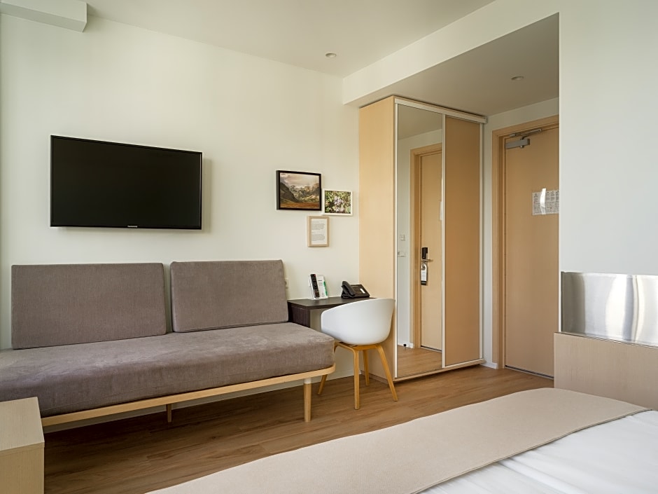 Standard Double with Mountain View is 161 square feet and includes either a double bed 131-150 width or 2 single beds 80-130 width.