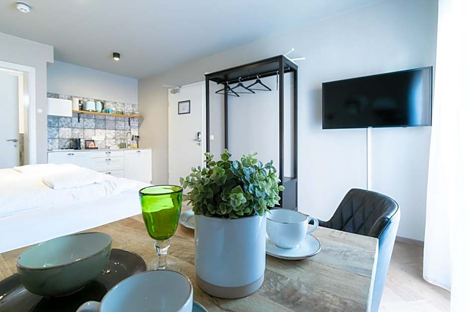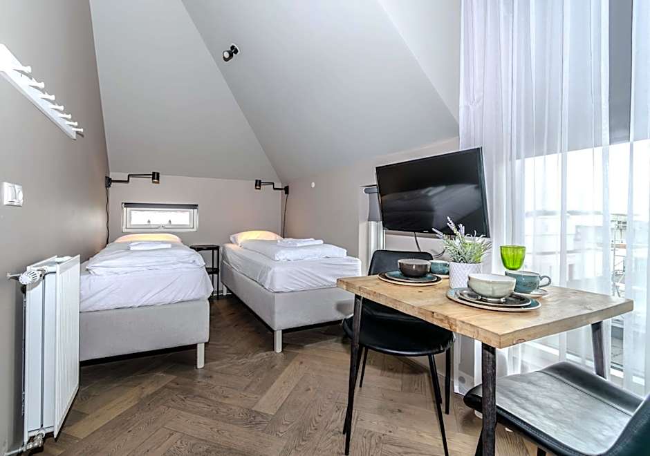 Offering free toiletries, this studio includes a private bathroom with a walk-in shower and a hairdryer. In the well-fitted kitchenette, guests will find a stovetop, a refrigerator, kitchenware and a tea and coffee maker. The studio features parquet floors, a seating area with a flat-screen TV, a dining area, heating as well as city views. The unit offers 2 beds.